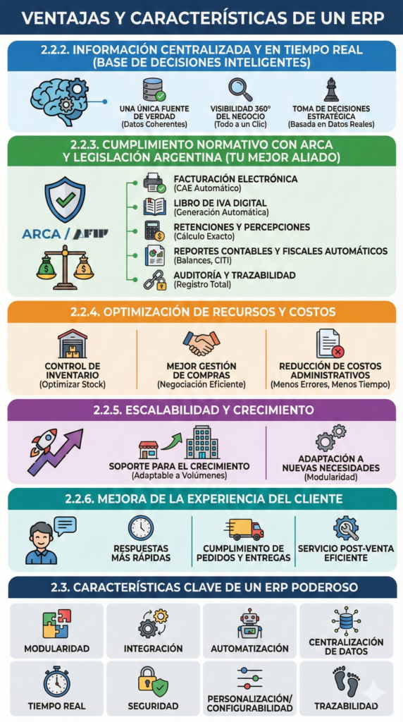 «correcto».Este es un punto CRÍTICO en Argentina. La normativa fiscal y contable es compleja y cambiante, y la AFIP exige cada vez más digitalización y precisión en las presentaciones. Un ERP es tu mejor aliado para: