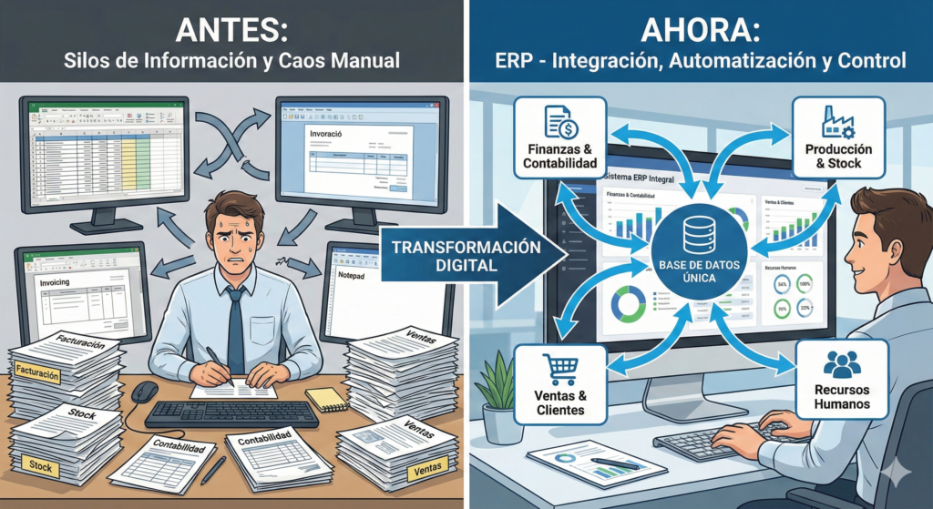 En el siglo XXI, y más aún en un contexto tan dinámico y regulado como el argentino, un ERP dejó de ser un lujo para convertirse en una necesidad estratégica y operativa. Analicemos las razones fundamentales: