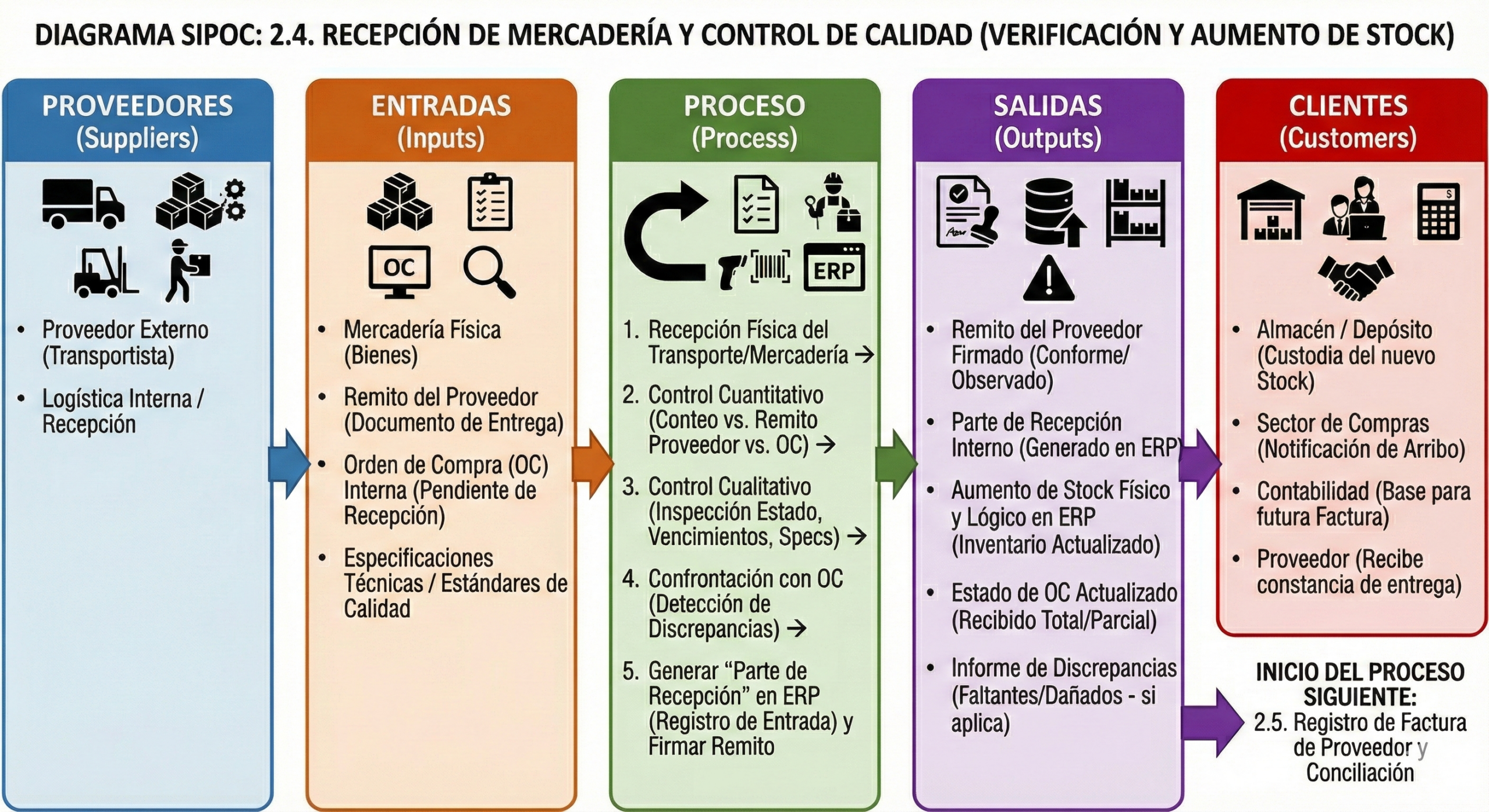 Esta etapa es crítica. Es el momento en que el bien o servicio adquirido llega a nuestra empresa y debemos verificar que se corresponde con lo pedido y acordado.