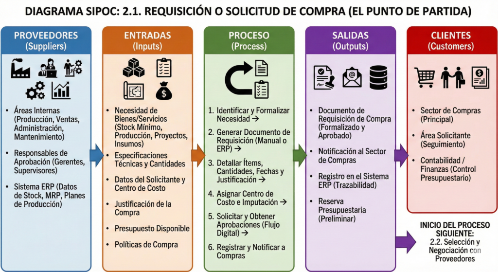 Todo proceso de compras nace de una necesidad. Esta necesidad se formaliza a través de lo que conocemos como Requisición o Solicitud de Compra. Es el primer documento interno que dispara el circuito.