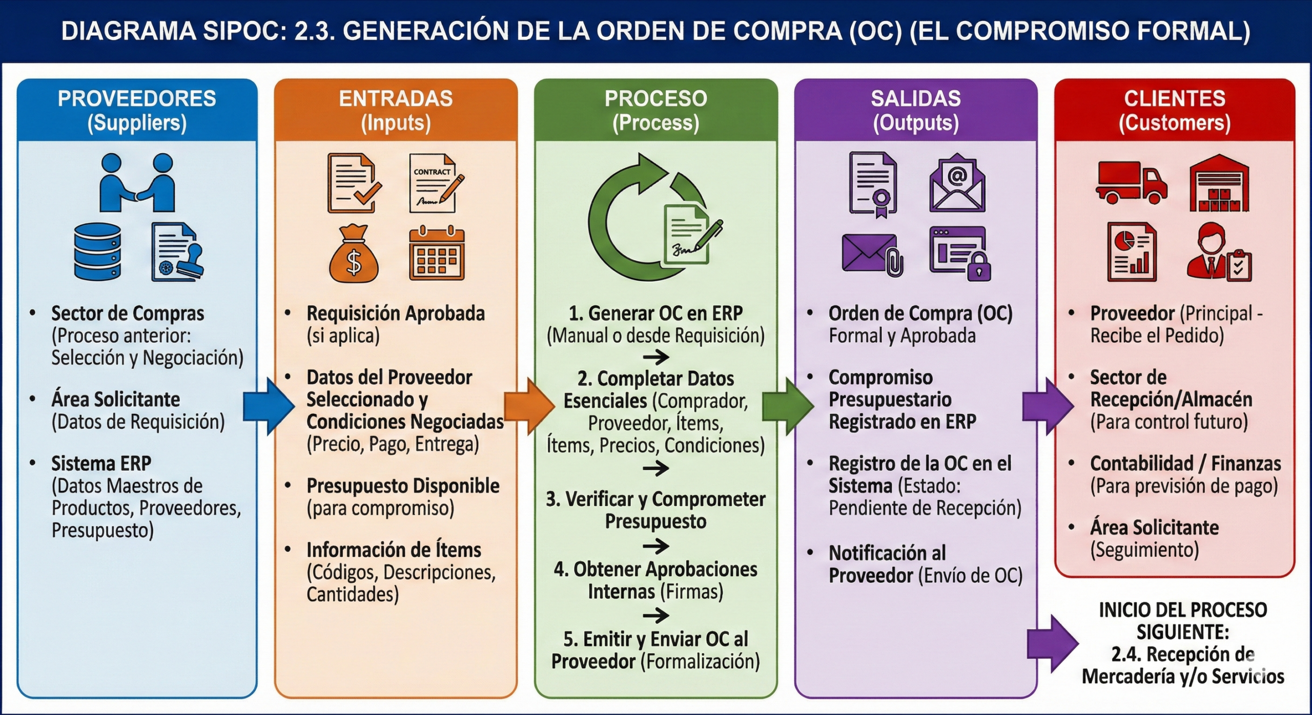 Una vez que el proveedor es seleccionado y las condiciones negociadas, se emite la Orden de Compra (OC). Este es el primer documento con validez legal externa y representa un compromiso formal de tu empresa con el proveedor.